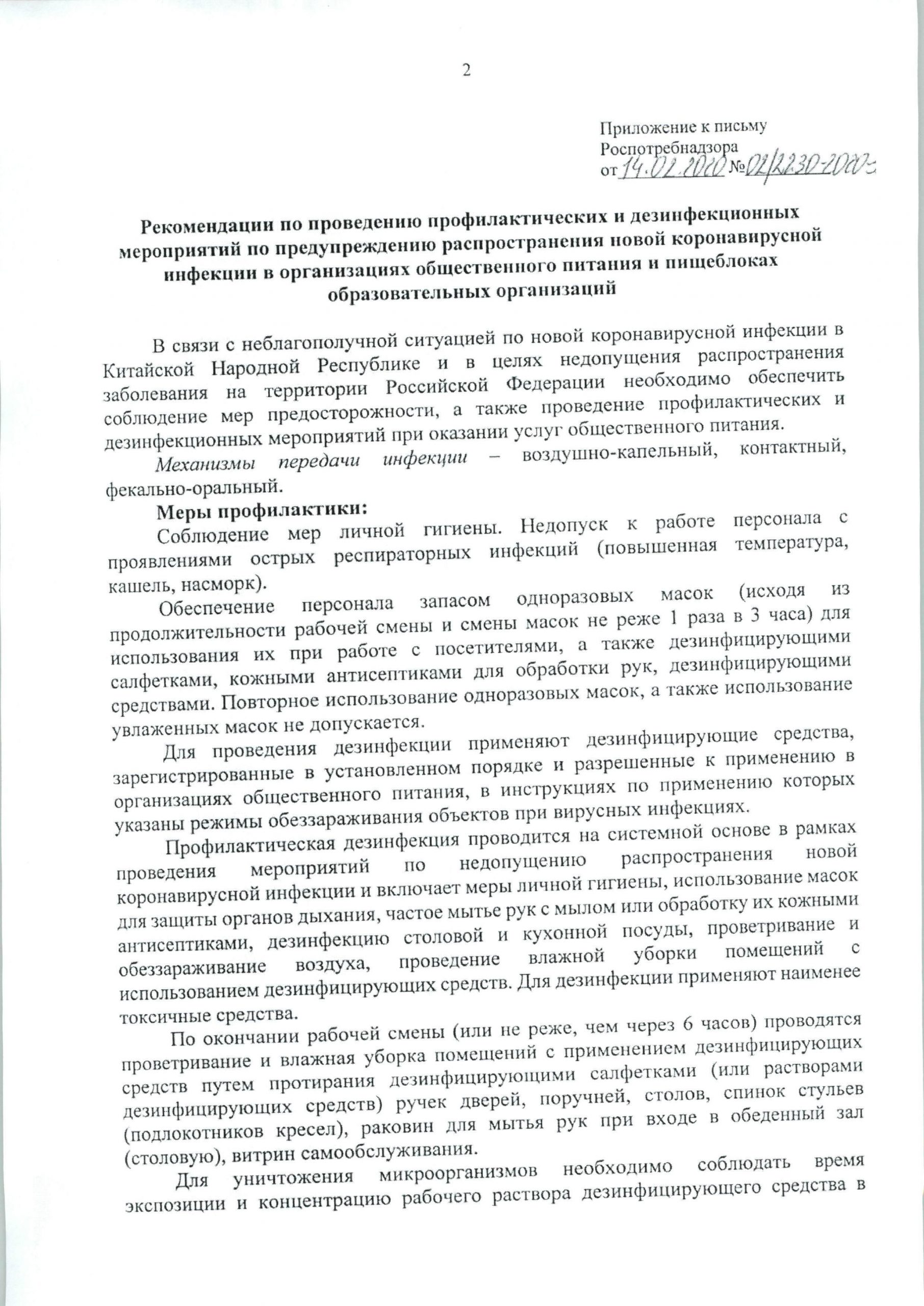 Рекомендации по проведению профилактических и дезинфекционных мероприятий по предупреждению распространения новой коронавирусной инфекции в организациях общественного питания и пищеблоках образовательных организаций 25.03.2020
